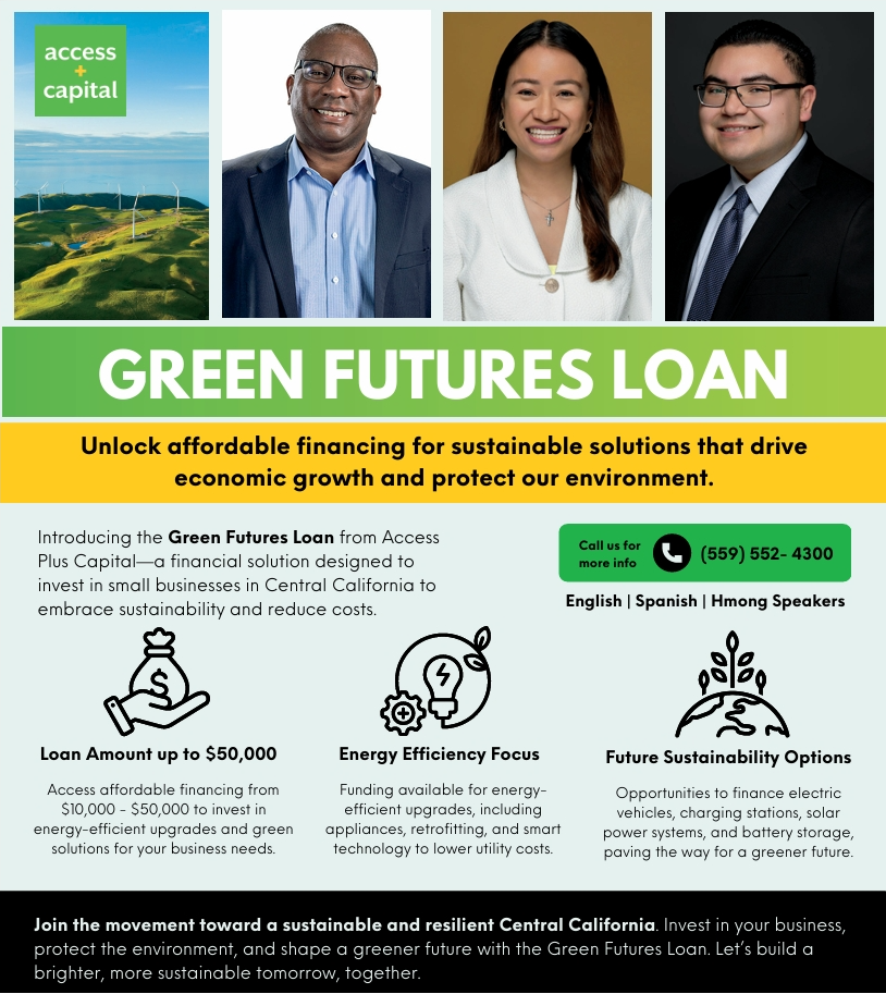 Access Plus Capital is intensifying its sustainability initiatives to become a leader in Central California in green technology adoption by ensuring equitable access to funds and technical assistance to Black, Indigenous, and People of Color (BIPOC), women small business owners, and people from historically disadvantaged communities. We at Access Plus Capital lead by example to demonstrate the benefits of green technology adoption to our clients. As such, several eco-friendly projects are underway including installing a solar parking canopy to power the headquarters and provide shade in the parking lot, adopting electric vehicles for company use, and installing an EV charger in the parking lot for employee and client use.